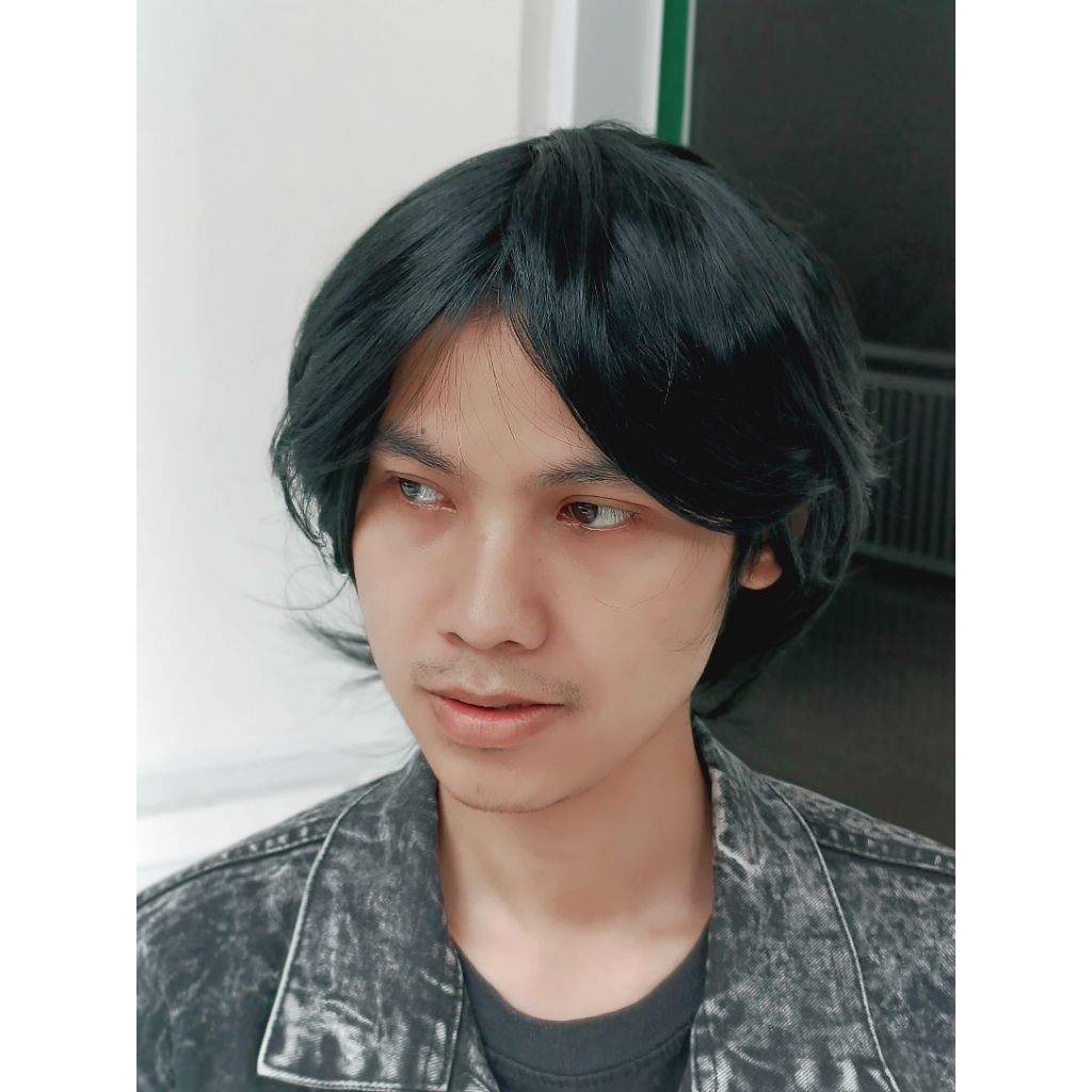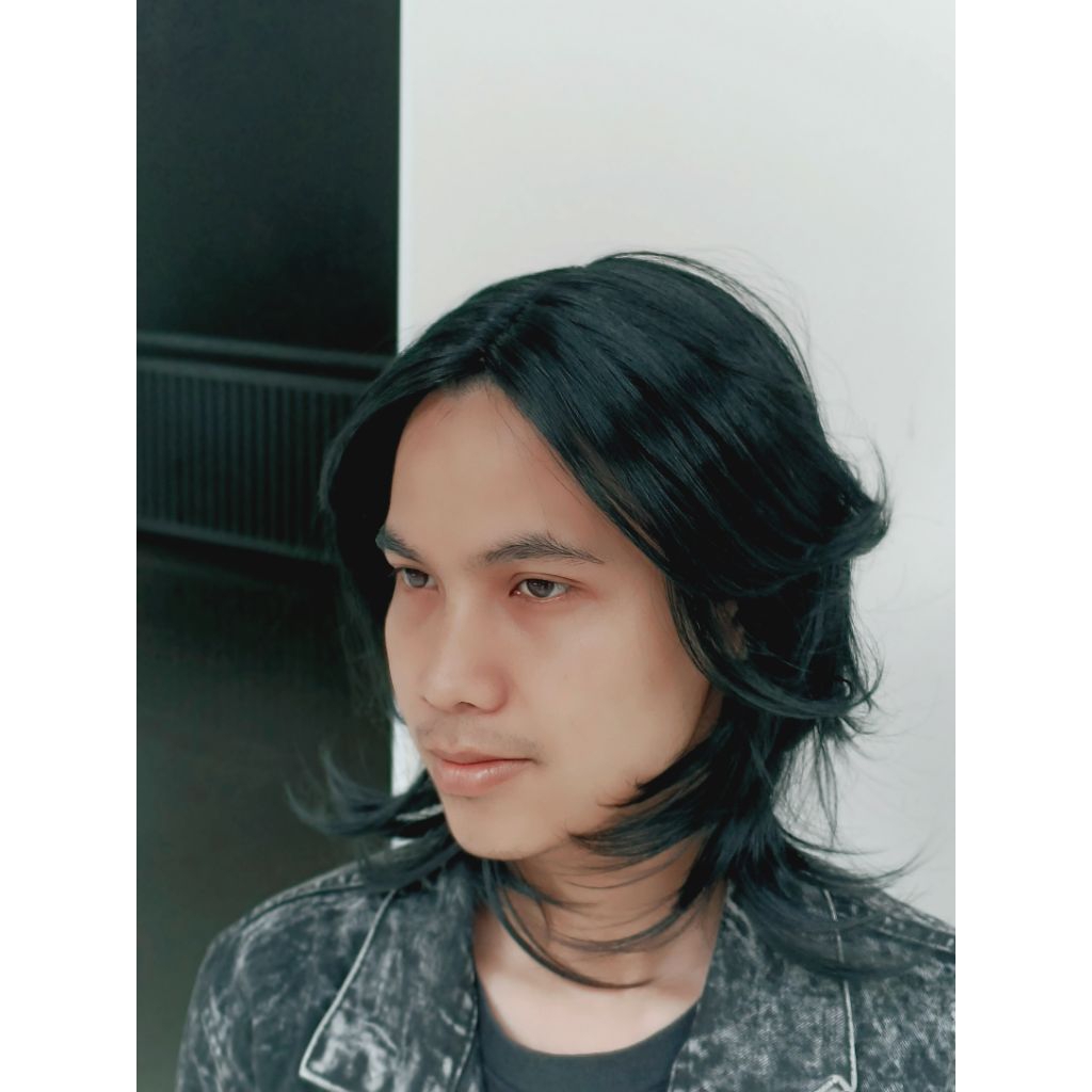 Wig Mulet Pria Wolfcut Pendek Gaya Korea Warna Hitam