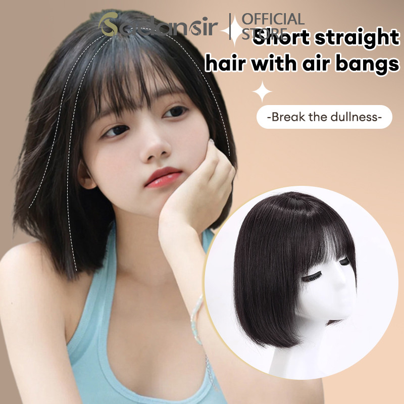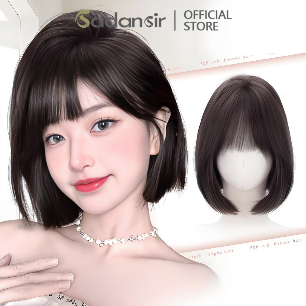 Sadansir Full Kepala Rambut Palsu Wanita Wig Korea Rambut Pendek Natural Hair Poni Rambut Lurus