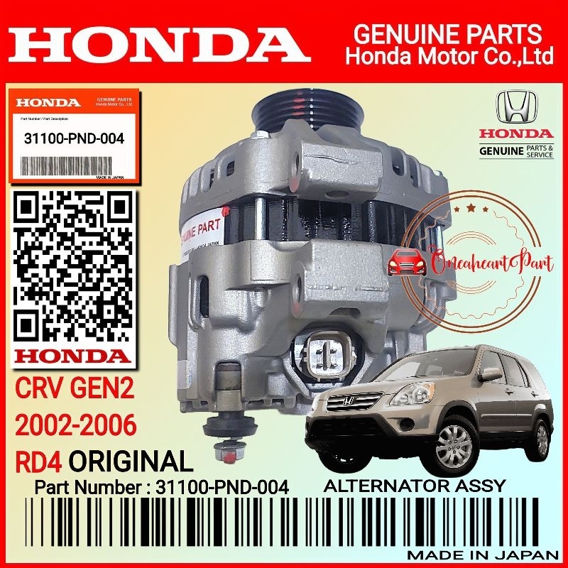 ALTERNATOR ASSY DINAMU DINAMO CAS AMPERE AMPER HONDA CRV GEN2 RD4 2.0 2.4L 2002 2003 2004 2005 2006 ORI