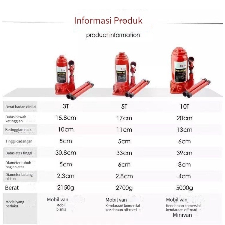 Dongkrak Botol 2/5/10 ton Mobil Universal Kuat Murah SUV Sedan Pickup KIR Hidrolik Hydraulic Jack Bottle
