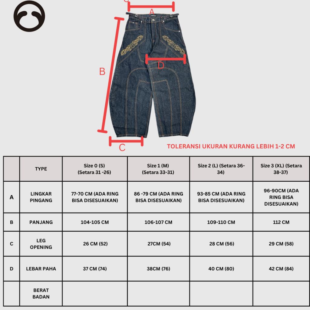 Bawwa Santai | Raw Denim (Bahan Kaku) | Davy Series | Black | Celana Baggy Barrel Curve Jeans Pecah Pola | | | Celana Go