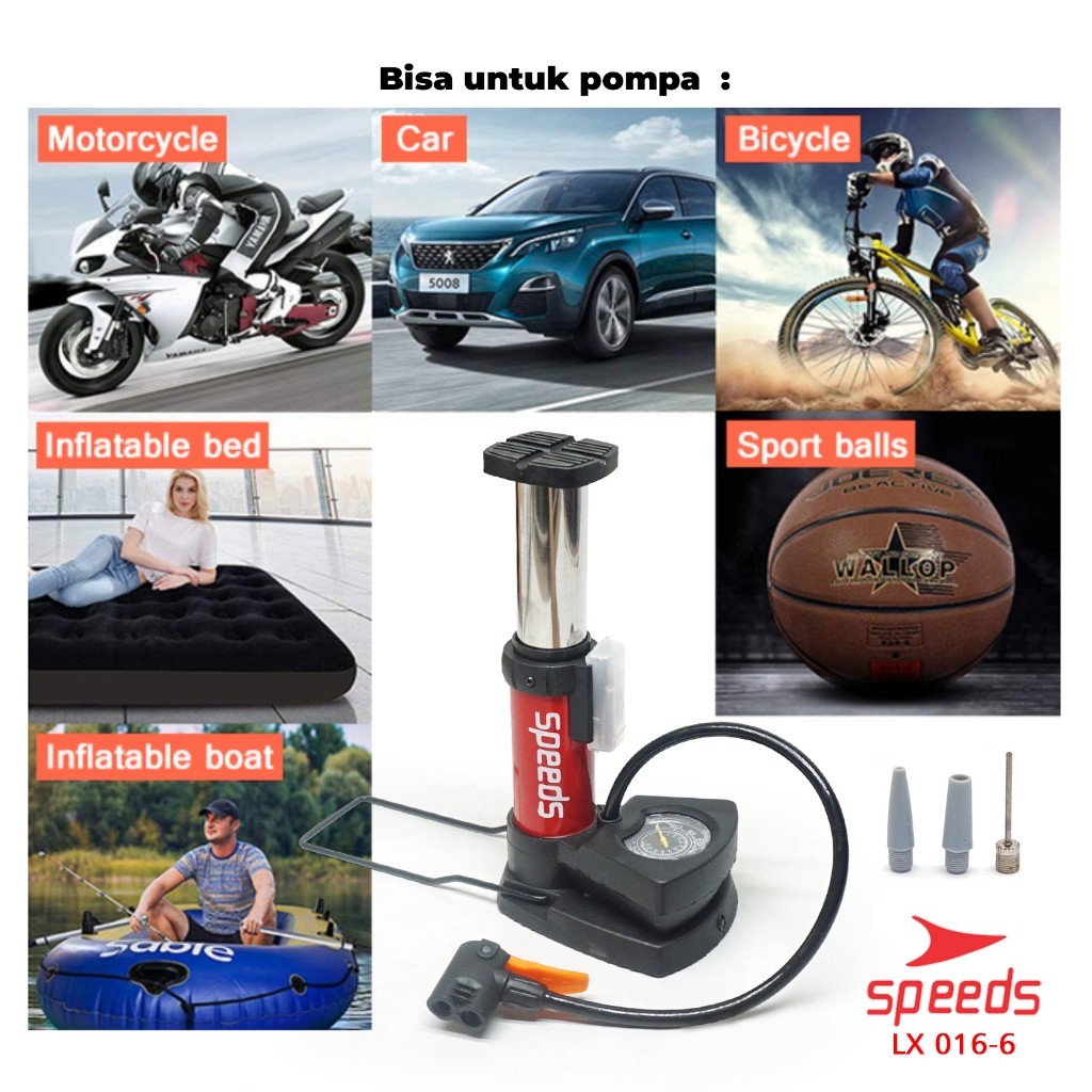 SPEEDS Mini Foot Pump Portable High Pressure-Pompa Angin Kaki Untuk ban mobil, motor 016-6