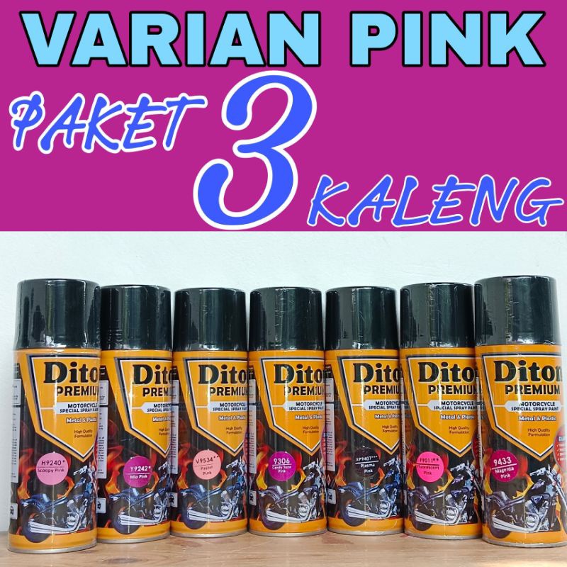 cat semprot cat spray PAKET 3 KALENG pilok pilok diton premium VARIAN PINK paket lengkap 3 kaleng mio pink 9242 magenta