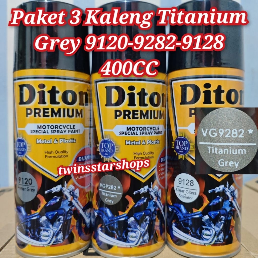 Pilok Pilox Pylox Cat Diton Premium Varian Paket 3 Kaleng Titanium Grey 9282 Primer Grey 9120 Clear 9128 Black 9109 Hita