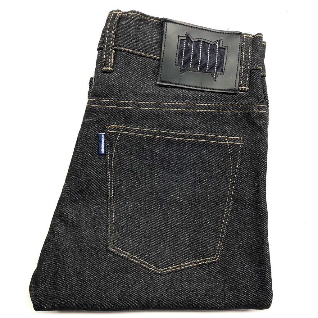 Worckhome Denim - Celana Jeans Pria Wabash Leather Raw Black 14Oz Accents