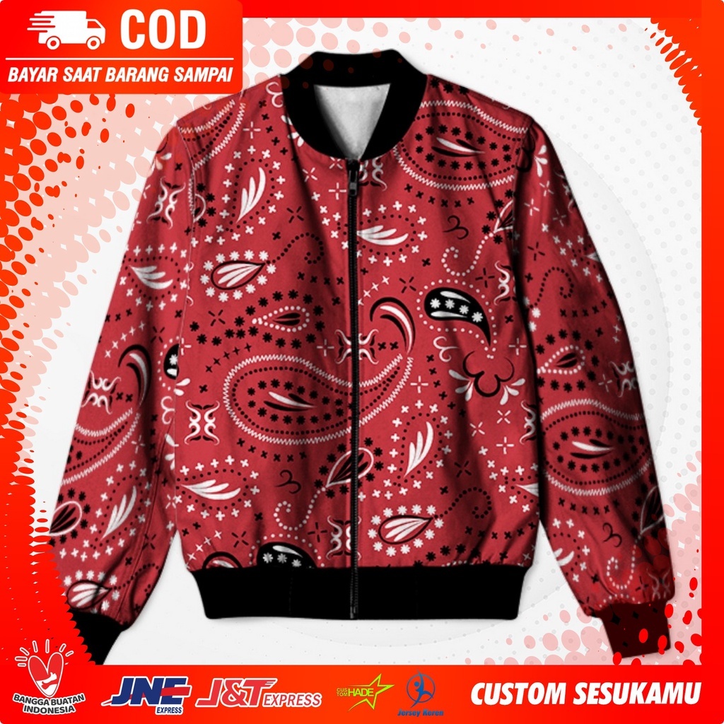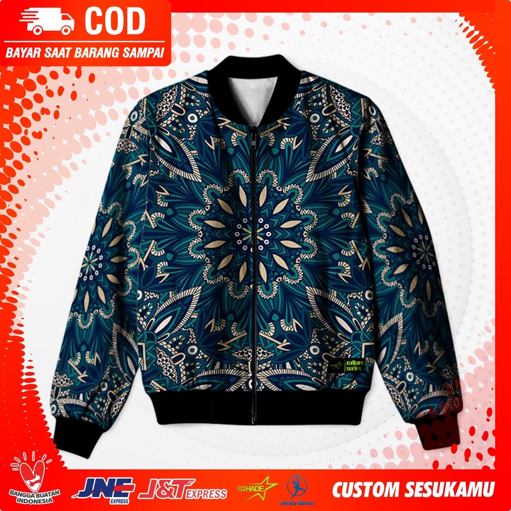 JAKET BOMBER BATIK CUSTOM FULLPRINT || JAKET BOMBER FULL PRINTING MOTIF BATIK PRIA WANITA - CUSTOMHADE