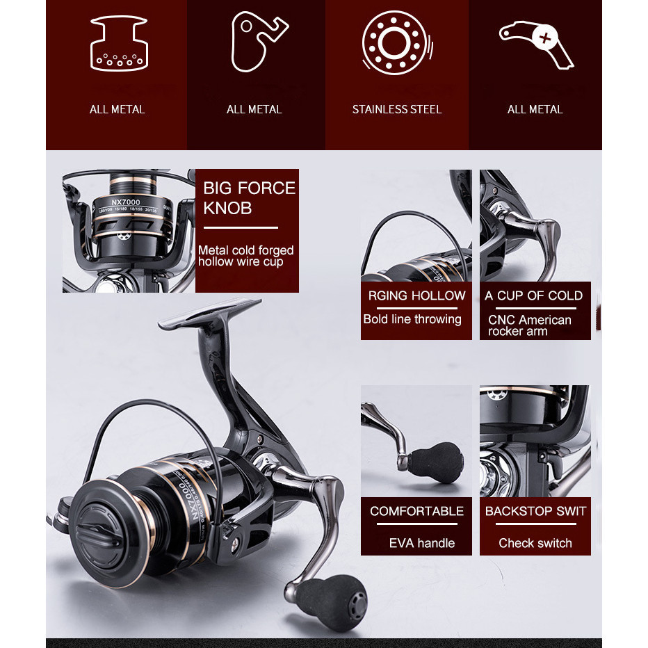 【Ready stok + 】reel pancing asli besi NX1000-7000 Drag 30 KG⚡hadiah Katak bionik⚡/reel pancing mini besi/reel pancing mu