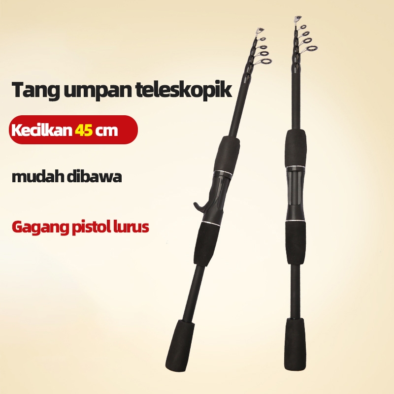 Set pancing teleskopik 1,8m-2,1m batang serat karbon dan gulungan pemintal 5.2:1 3BB, tarikan maks 3kg, perlengkapan mem