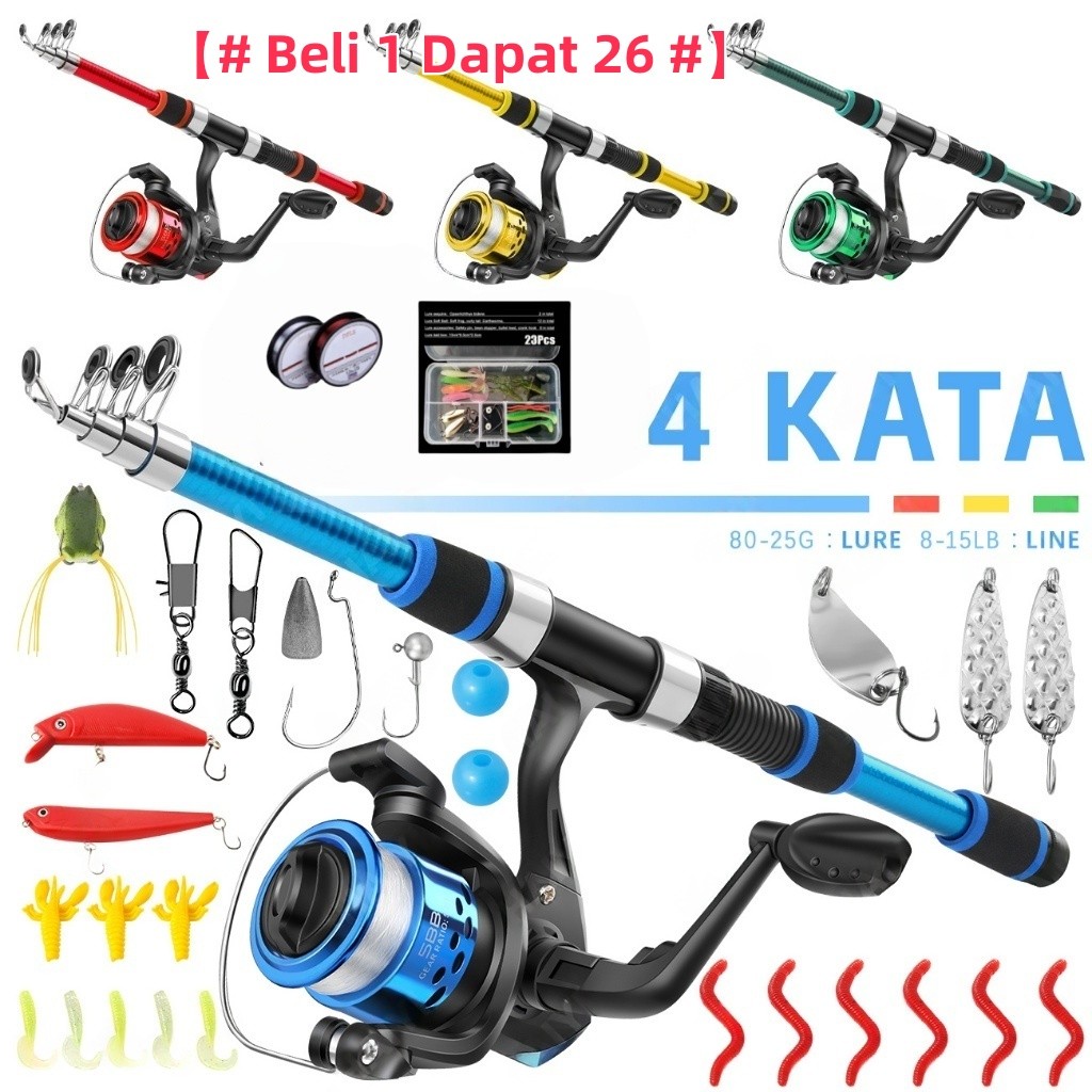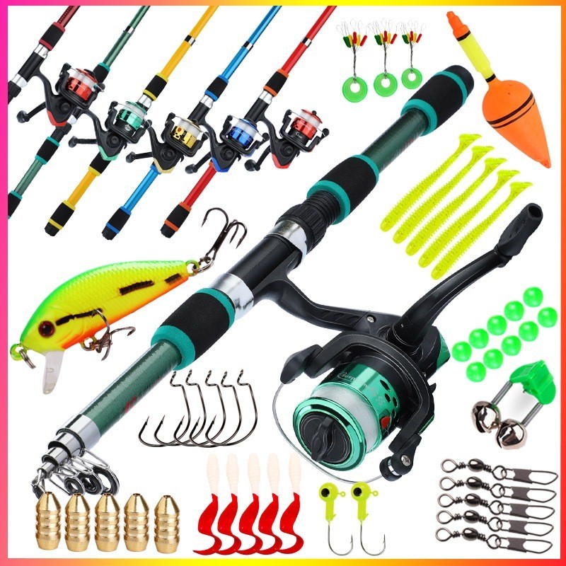 Joran pancing Set fiber glass murah 1.8m dan reel set 5 warna untuk memancing anak-anak dewasa