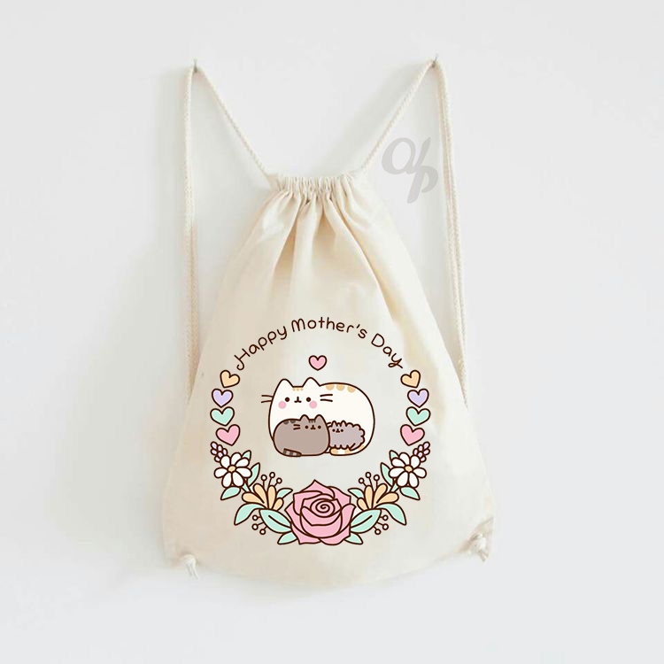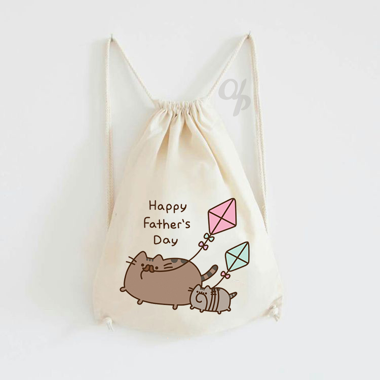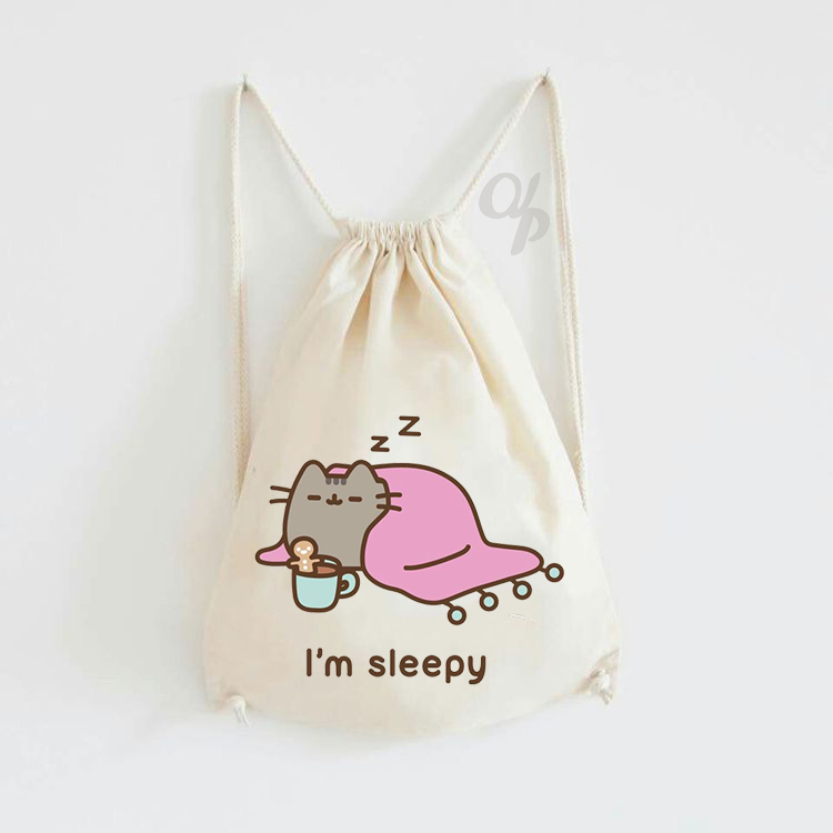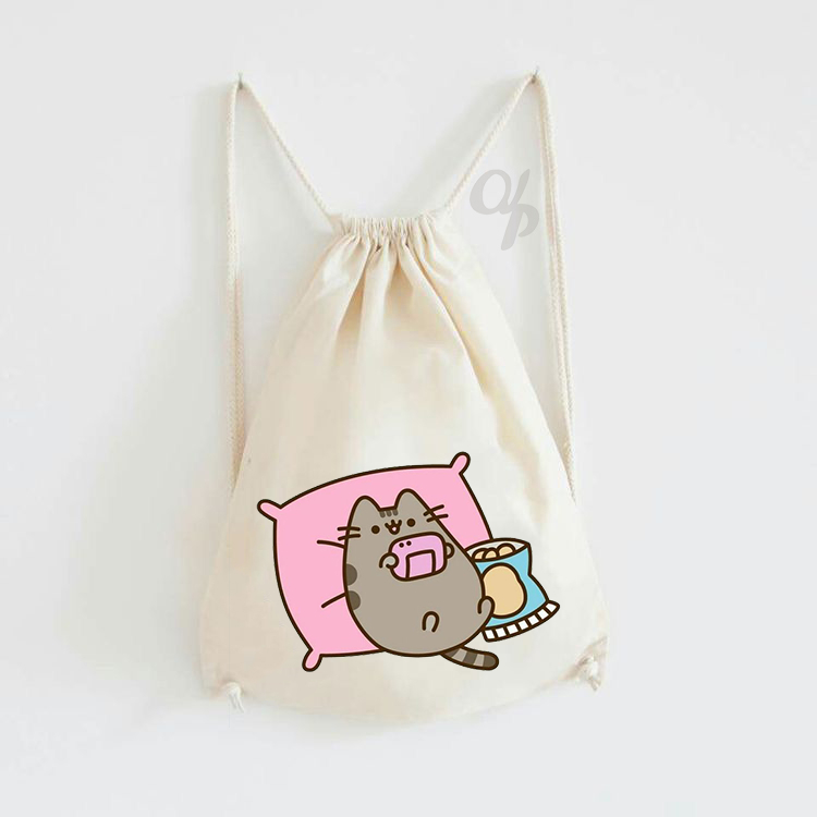 Tas Serut Kanvas Motif Pusheen Cat / Tas Gendong / hampers anak / Stringbag