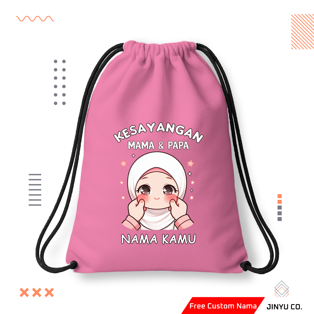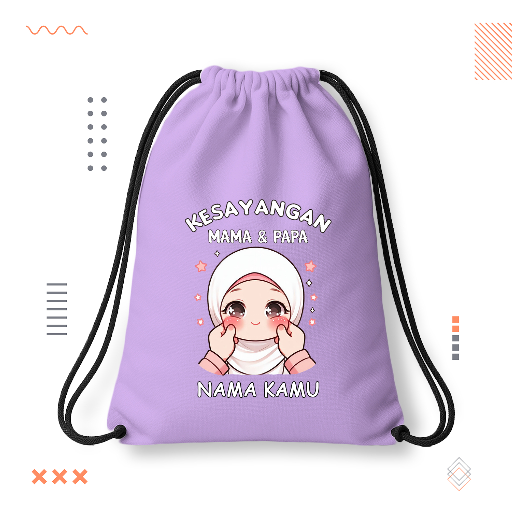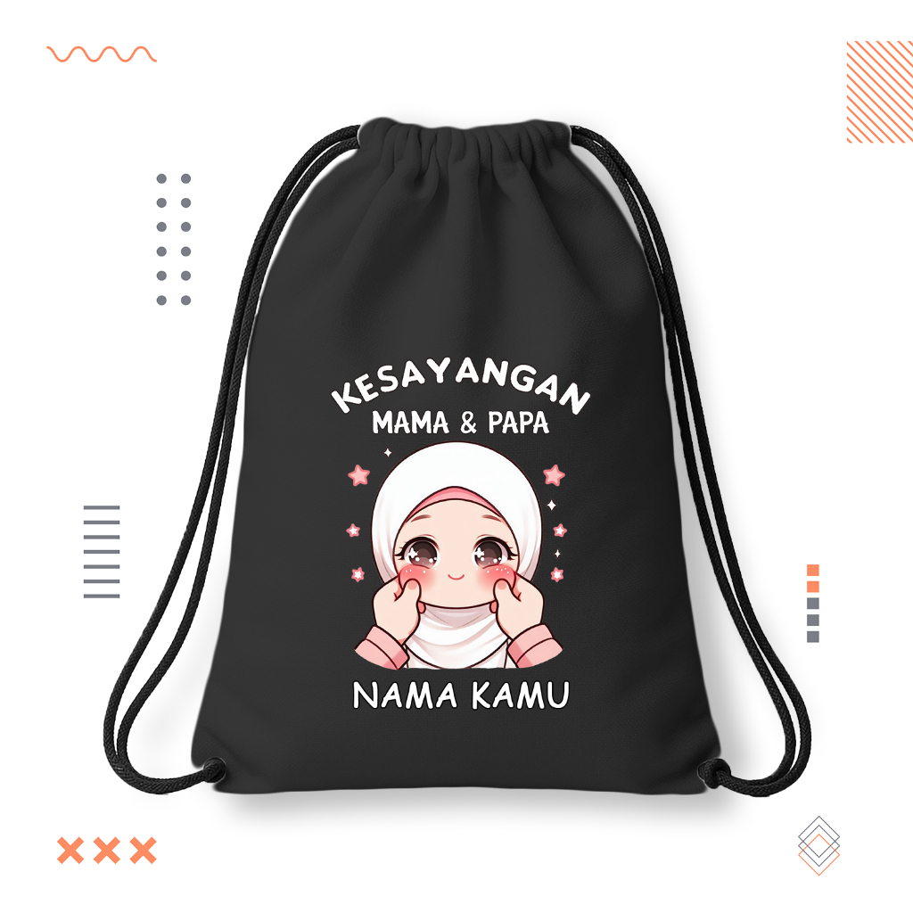 Tas Serut | Tas Serut Anak | Tas Serut Cusom Nama | Tas Serut Anak Kesayangan Mama Papa Custom