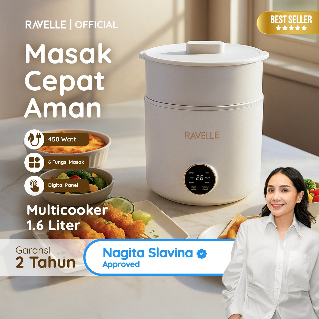 RAVELLE TALEA Multicooker 1.5 Liter - Panci Kukusan Listrik Multifungsi Low Watt / Simplus 1,5L Kukusan Plastik