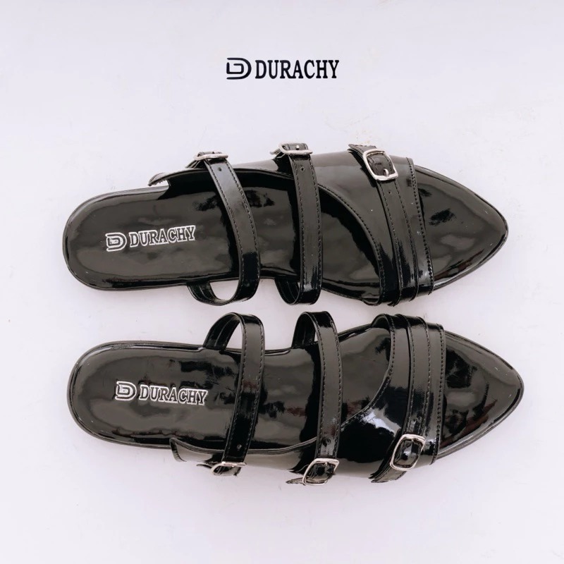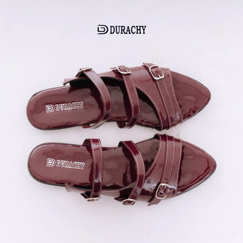 Sendal - sendal cewek - sendal tali - Alichia Sandal Wanita Mules Flat SlipOn Gesper Lancip Daily Use