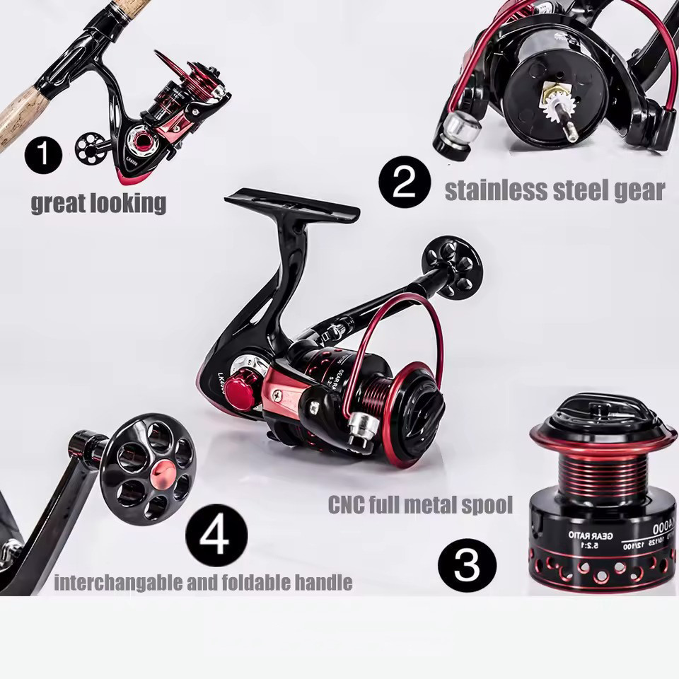 【#Alat Memancing Lengkap 5 SET #】LK1000-7000 Fishing Gear Combo Untuk Pemula 1.6M-2.4M EVA Handle Set Memancing Untuk Ai