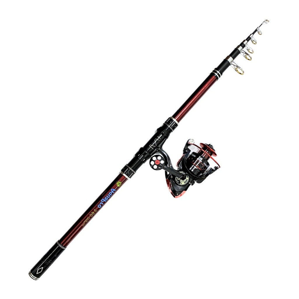 1 Set Joran Laut Merah Portable High Carbon dengan Reel Pancing Spool Metal Aluminium Kuat untuk Laut Terdapat Paku di b