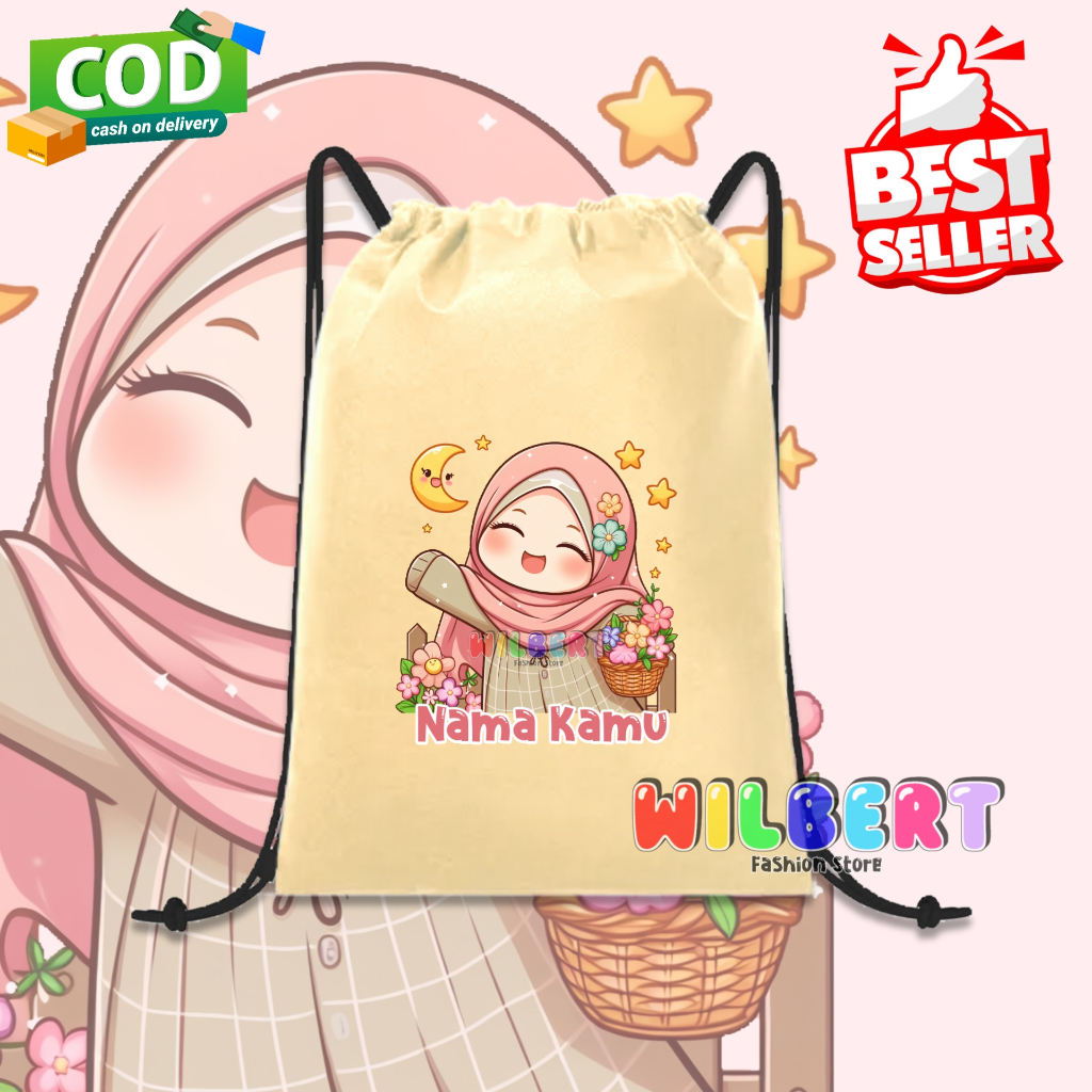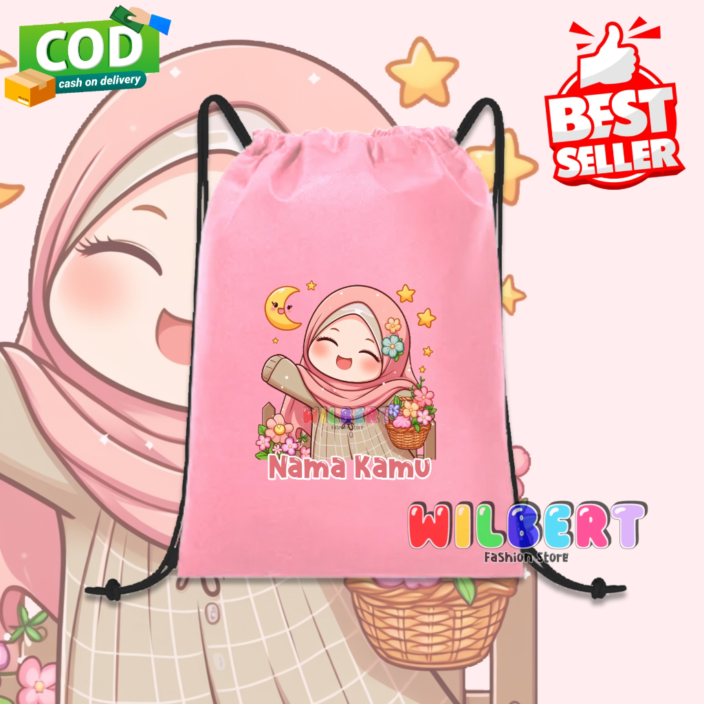 Tas Serut Anak Ngaji / Tas Ngaji Motif Anak Hijab Gratis Nama