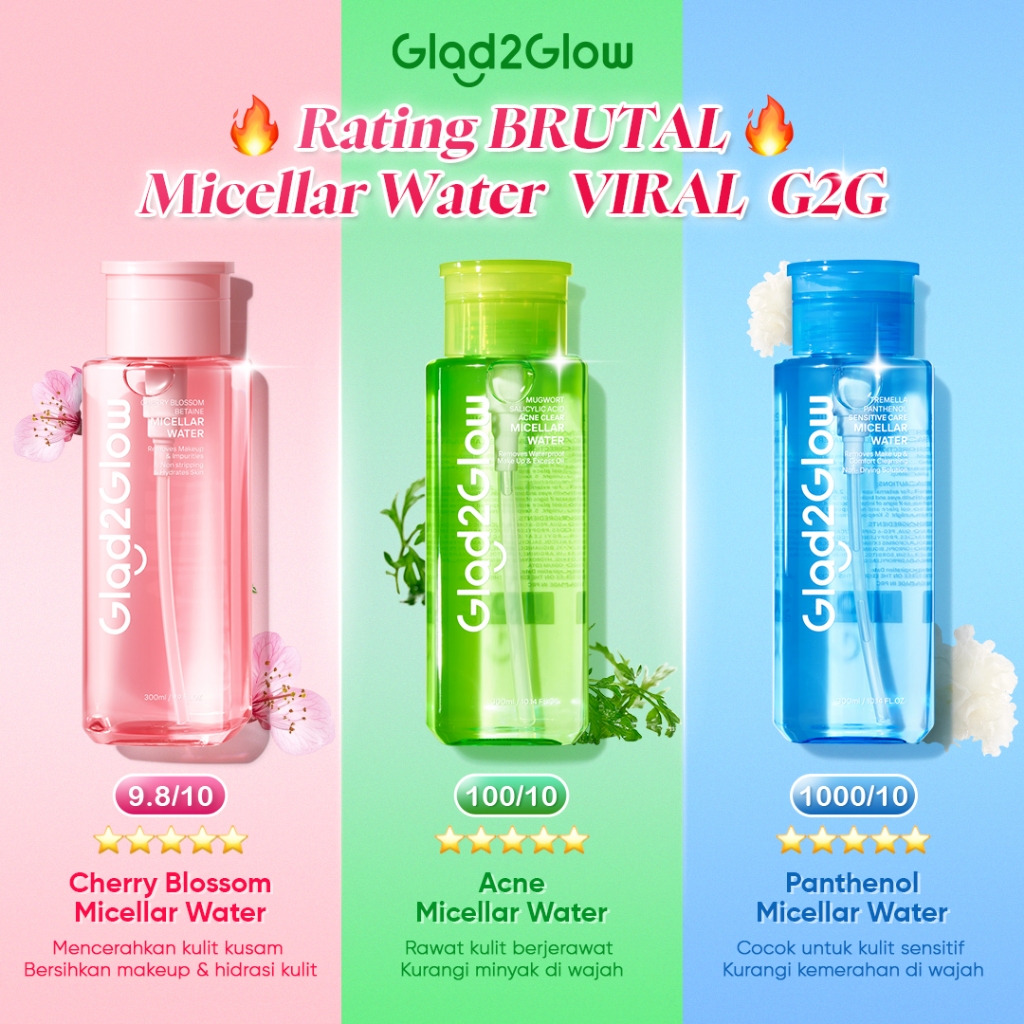Glad2Glow Official Store | Glad2Glow Micellar Water All Series-Cherry Blossom/Sensitive Care/ACID ACNE Makeup Remover