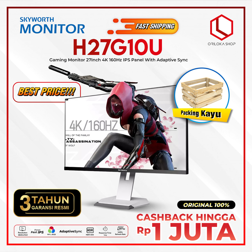 (+Packing Kayu) Skyworth H27G10U Monitor Gaming LED 27" Inch 4K 160Hz Fast IPS Panel With Adaptive Sync - Resmi