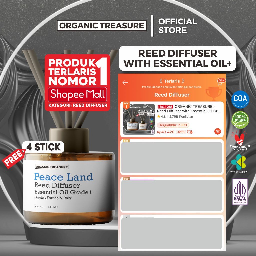 Organic Treasure - Reed Diffuser With Essential Oil Grade+ All Variant Best Seller [Free 4 Stcick]