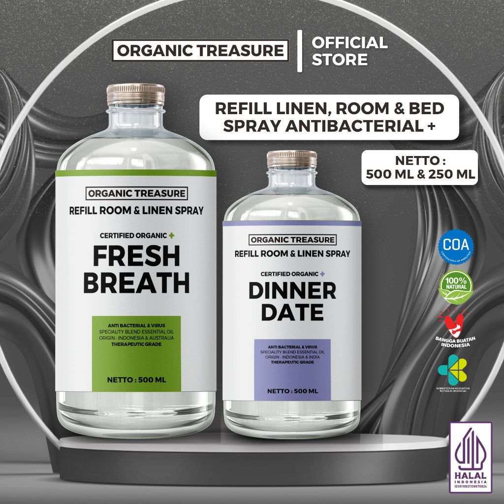 [500Ml] Organic Treasure - Refill Premium Room, Bed & Linen Spray With Essential Oil