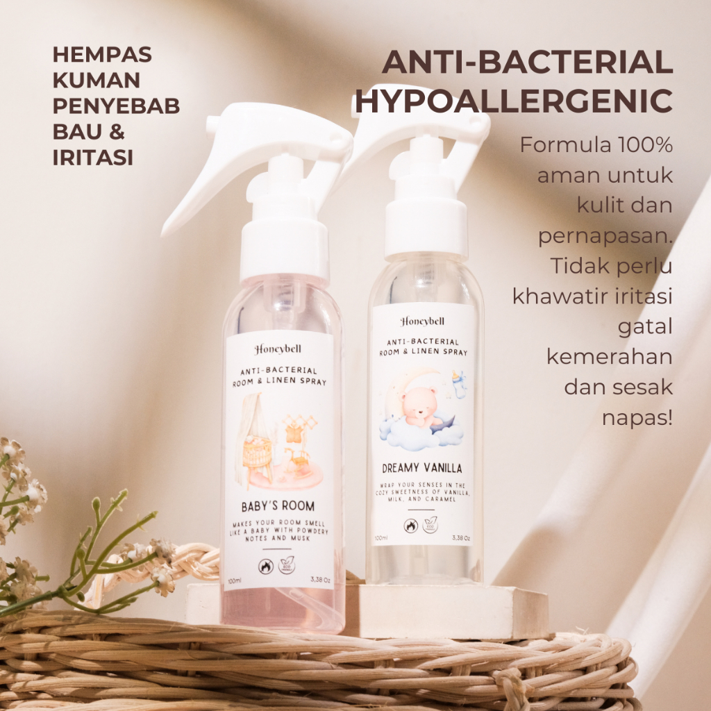Honeybell - Room & Linen Spray Anti Bakteri 250Ml / Anti Virus / Anti Bacterial / Pengharum Kain