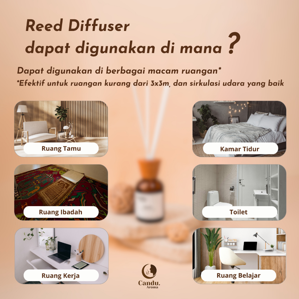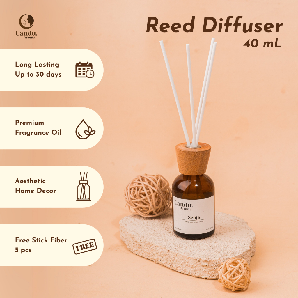 Candu Aroma | Reed Diffuser Pengharum Ruangan Aromaterapi Dekorasi Pewangi Ruangan Tahan Lama 40 Ml