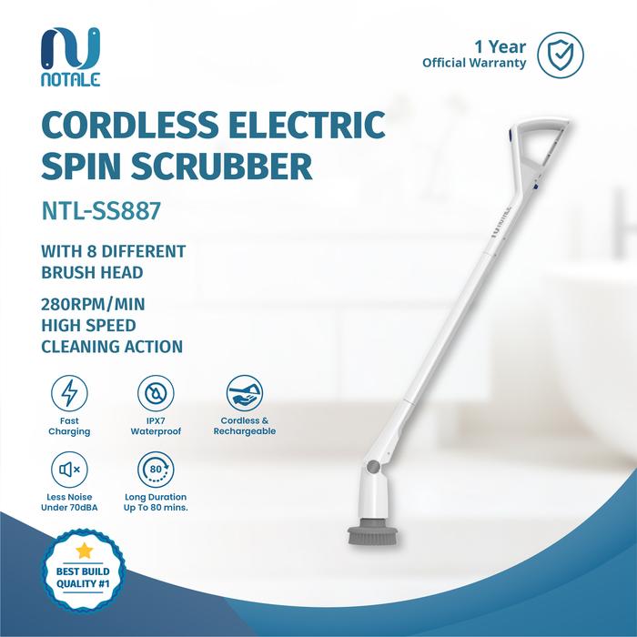 Notale Cordless Elektrik Spin Scrubber Sikat Toilet Sikat Pembersih WC Brush Putih Sikat WC - putih