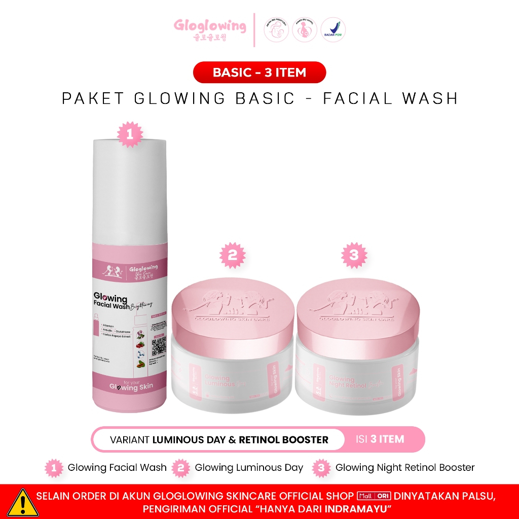 GLOGLOWING Official Store | GLOGLOWING Paket Glowing Basic 3PCS – Skincare Wajah Cerah & Sehat