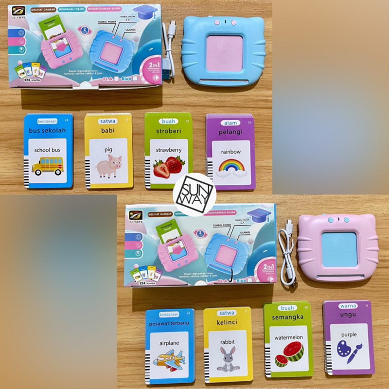 Mainan Flash Card Bersuara / Alat Bantu Pengenalan Kosakata Bahasa Inggris Dan Bahasa Indonesia / Mainan Edukasi Daya In
