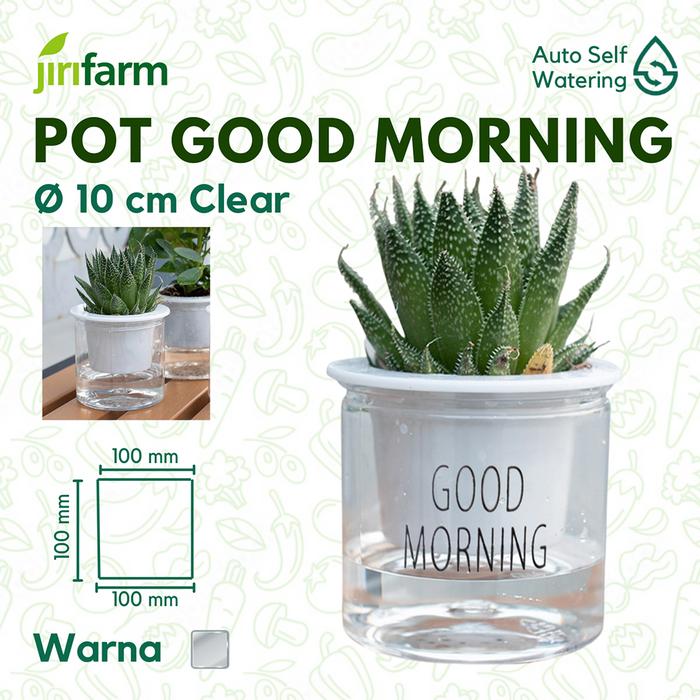 JIRIFARM - Pot Bunga Good Morning Bulat Size 10 - Tanaman Hias Otomatis Self Watering Pot Unik - Transparan