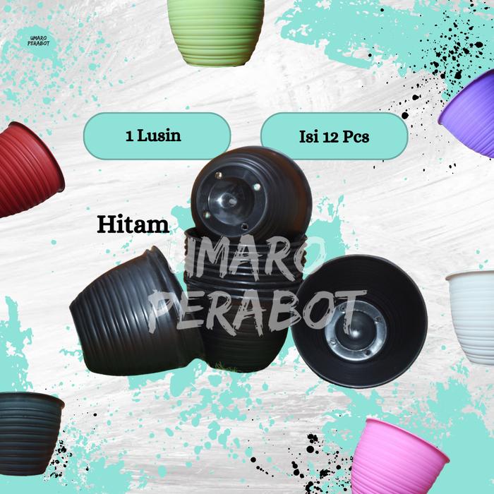 GROSIR 1 Lusin Pot Tawon 25 / Pot Tanaman / Pot Bunga / Pot Plastik / Umaro Perabot - Hitam
