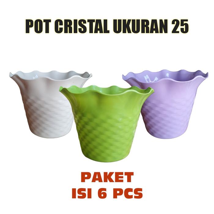 Pot cristal ukuran 25 paket isi 6pcs pot bunga cantik motif bunga 25 cm Tanaman - putih paket isi 6pcs