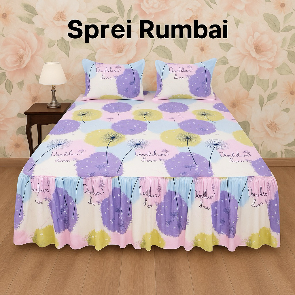 SPREI RUMBAI MOTIF TERBARU UKURAN 120x200x40 160x200x40 180x200x40 BAHAN KATUN FREE SARUNG BANTAL DAN SARUNG GULING