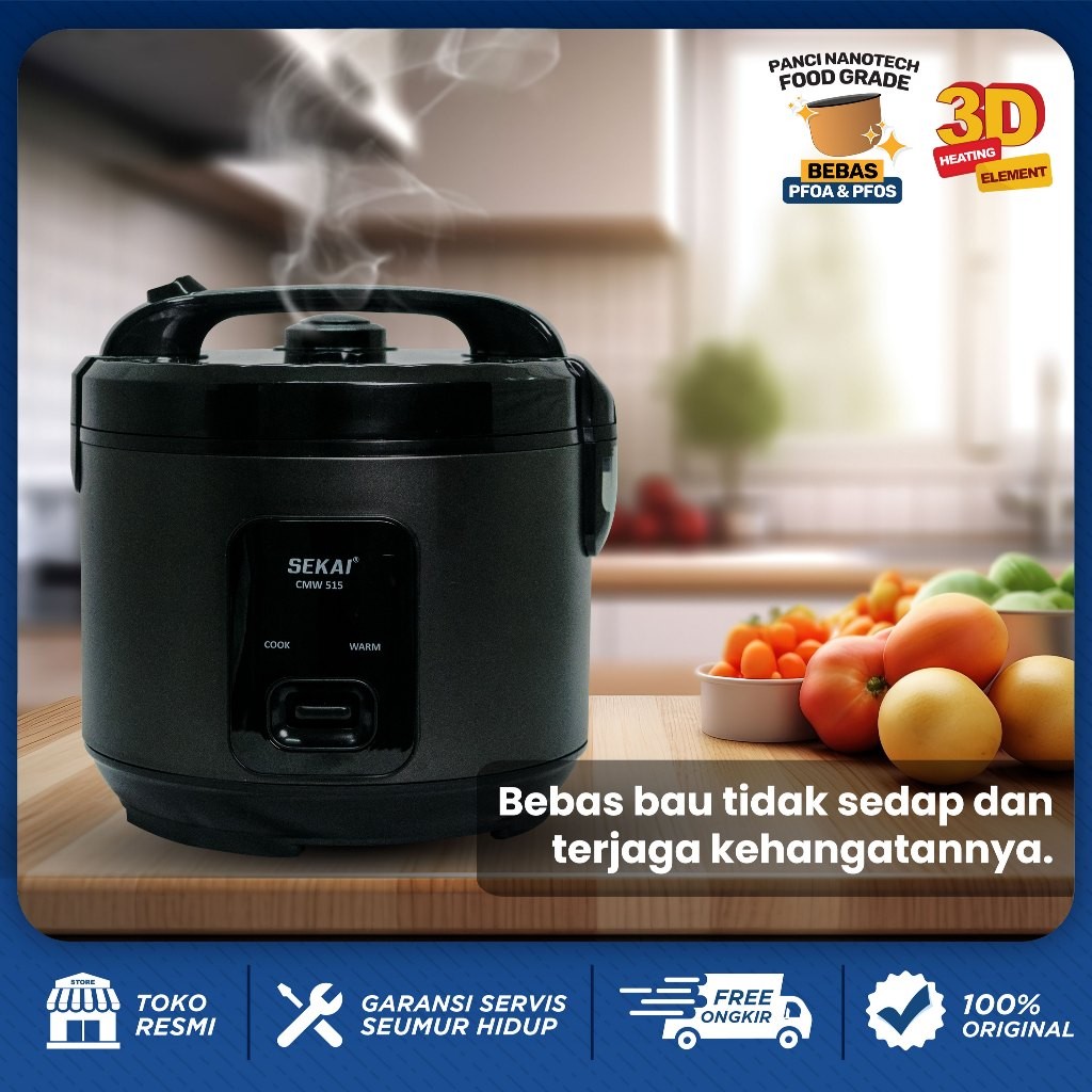 [Star] Sekai Rice Cooker / Penanak Nasi Magic Com Penghangat Nasi 3 In 1 Ukuran 1.8L - Cmw 515