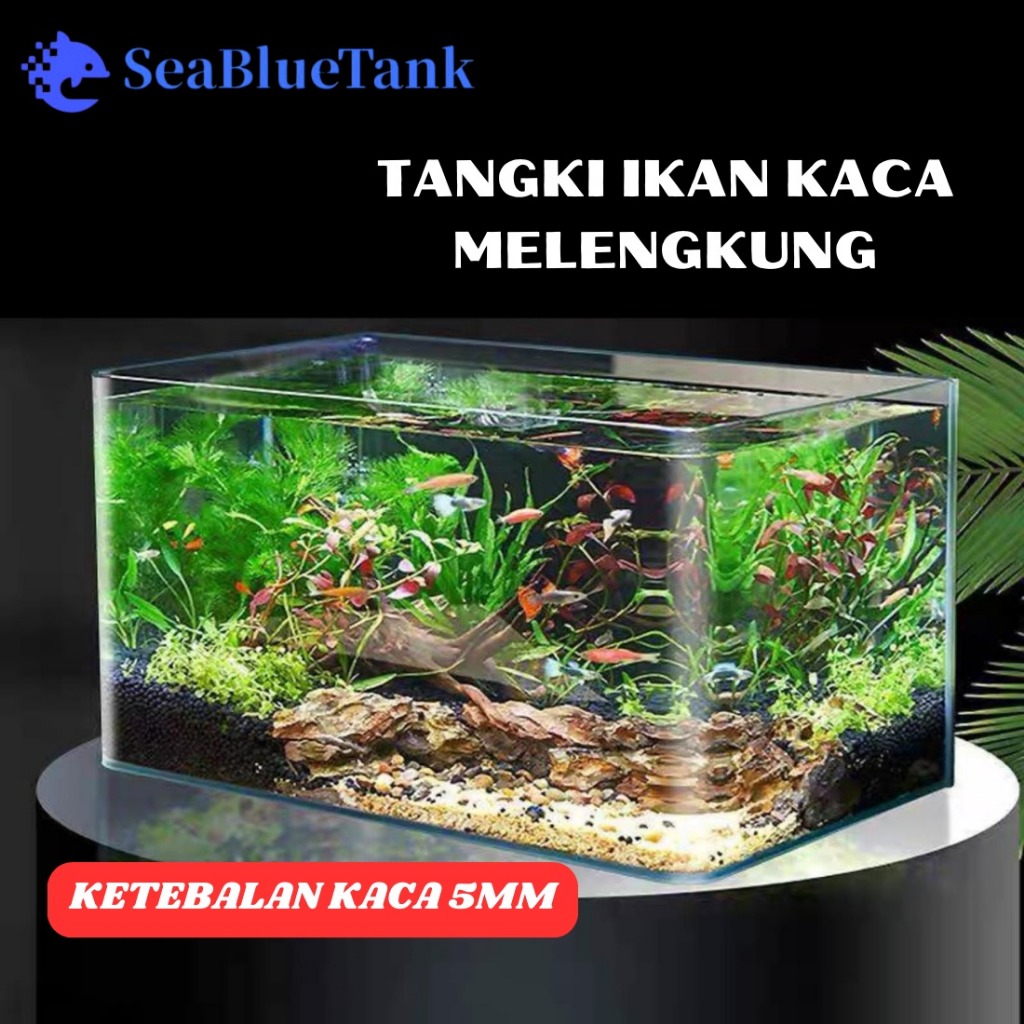 Aquarium Ikan 30 35 40 50 60 cm Tangki Akuarium Ikan Mini Bahan Kaca Super Bening Melengkung