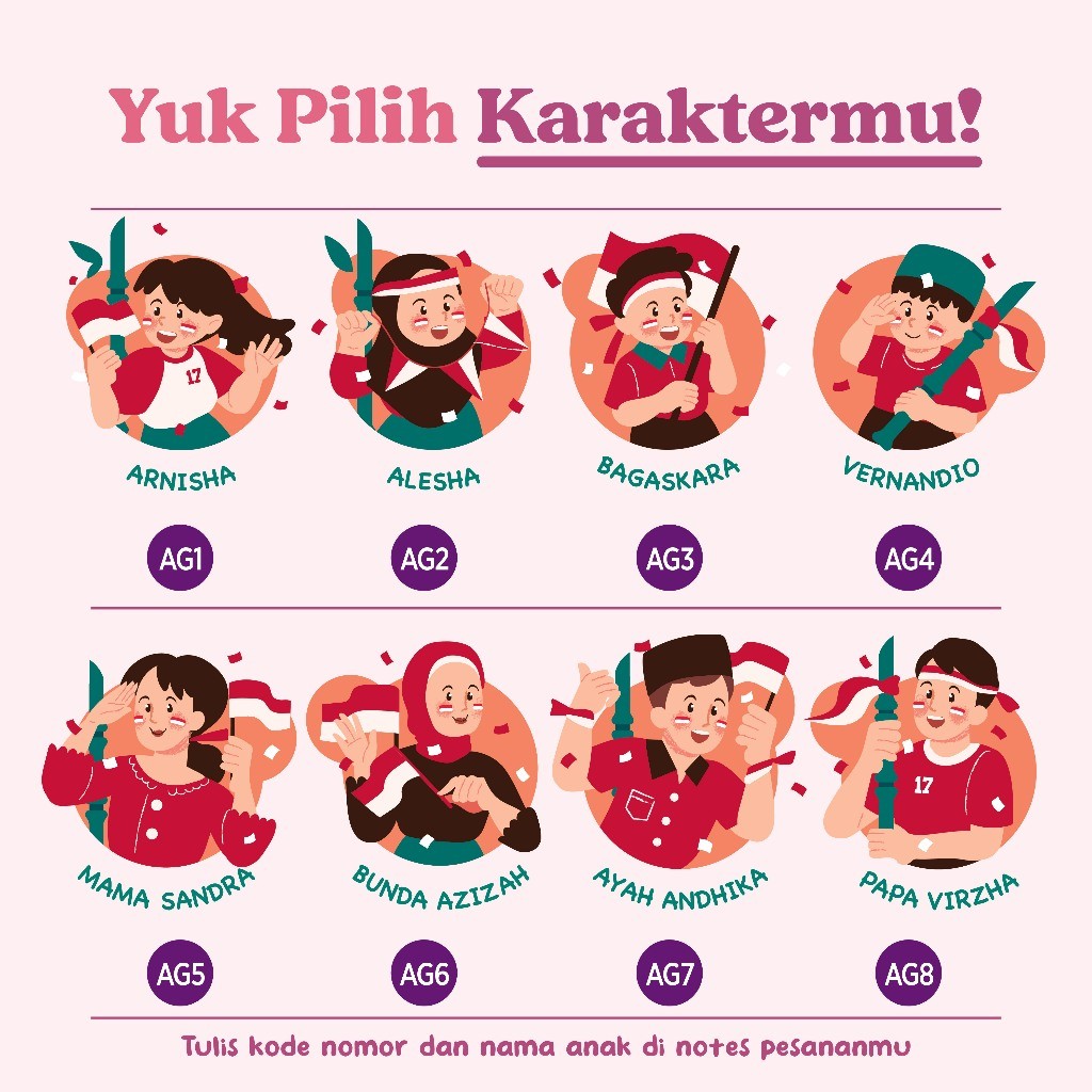 BOS FASHION - Maoomi - Kaos Merdeka - Baju Custom Nama Anak Couple Keluarga - Cotton Combed 30s - 17 Agustus 2024