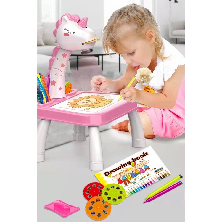 Mainan Meja Gambar Anak Proyektor Dino Dan Pony / Meja Menggambar Proyeksi Gambar Berwarna / Drawing Projector