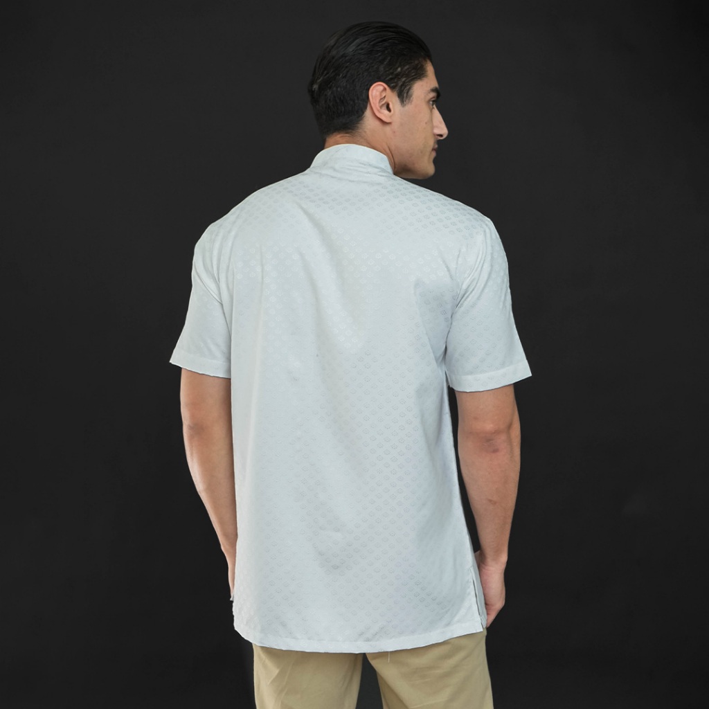 Casella Baju Koko Pria Lengan Pendek Pleats Ilyas | Baju Koko Putih Lengan Pendek