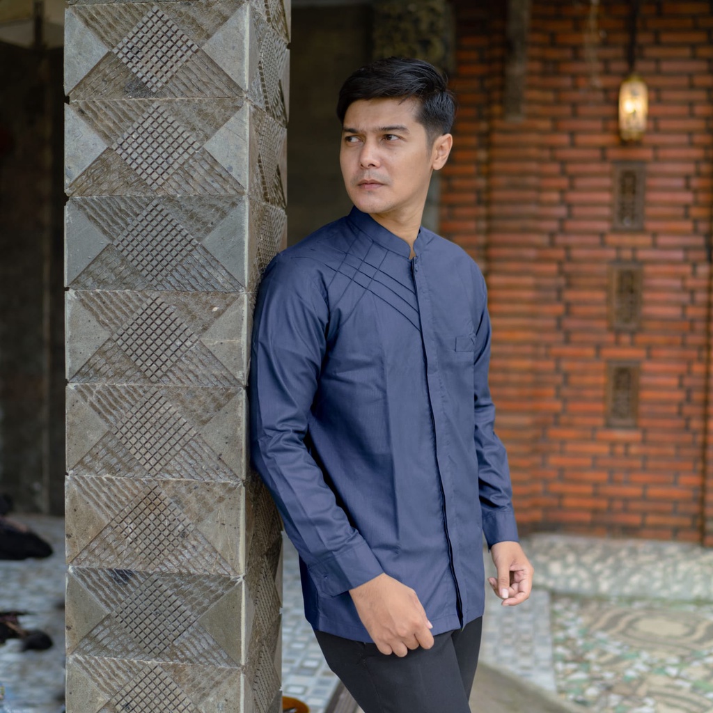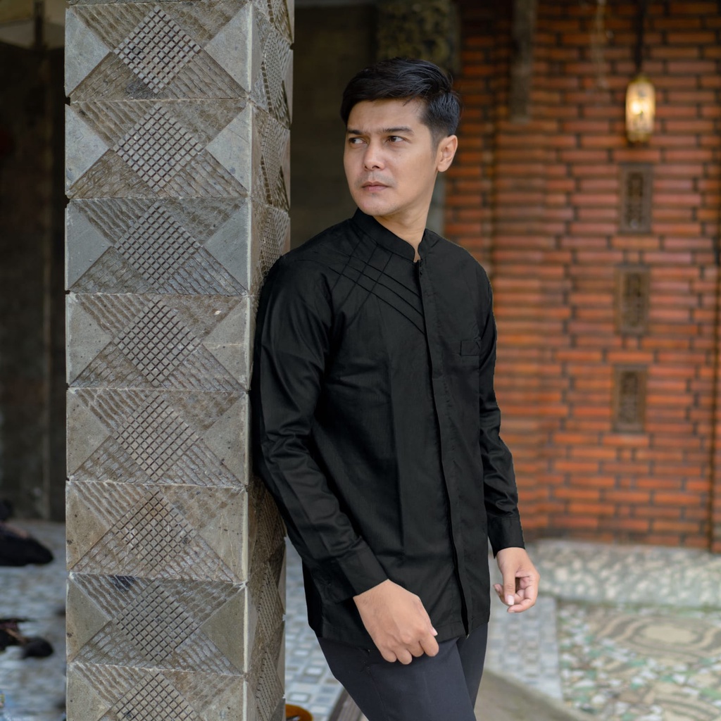 Asakhi - Baju Koko Pria Hadroh Kombinasi Motif Marvel Lengan Panjang Warna Putih M L XL