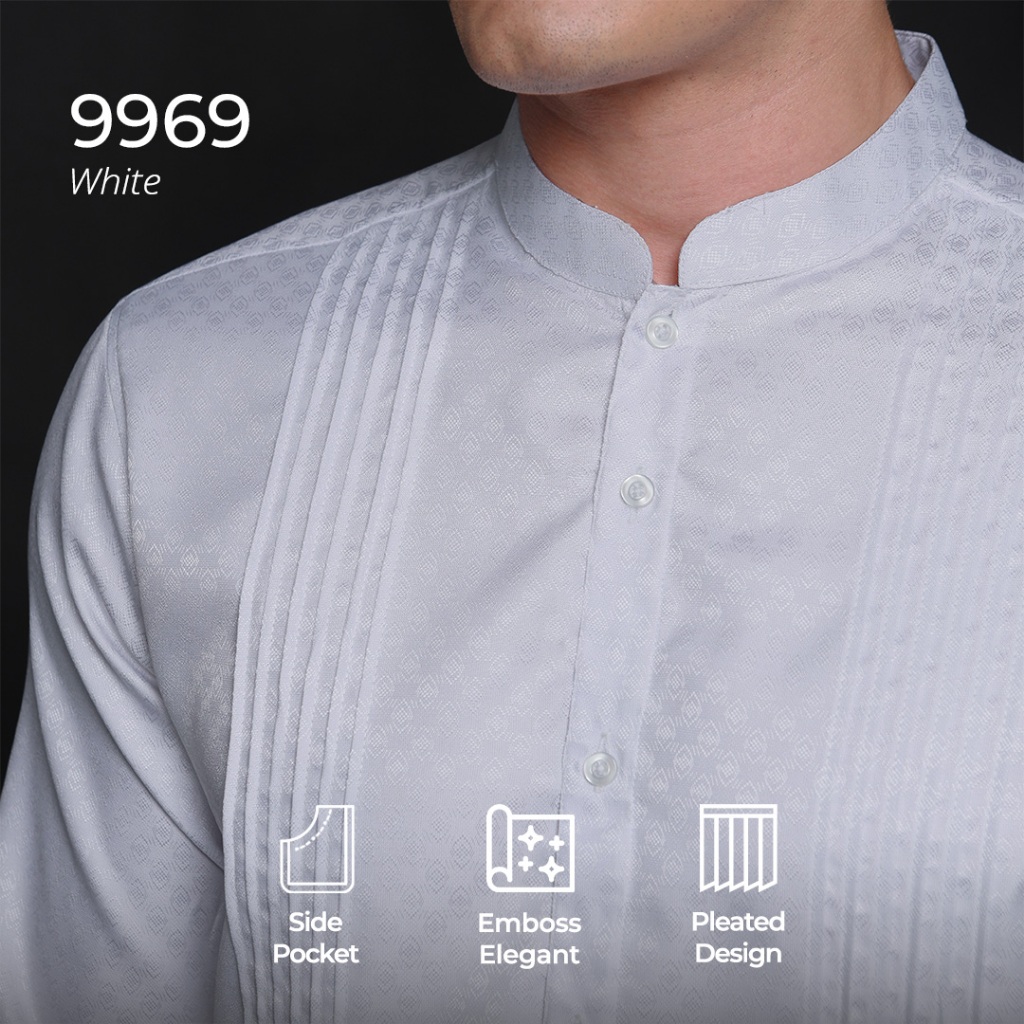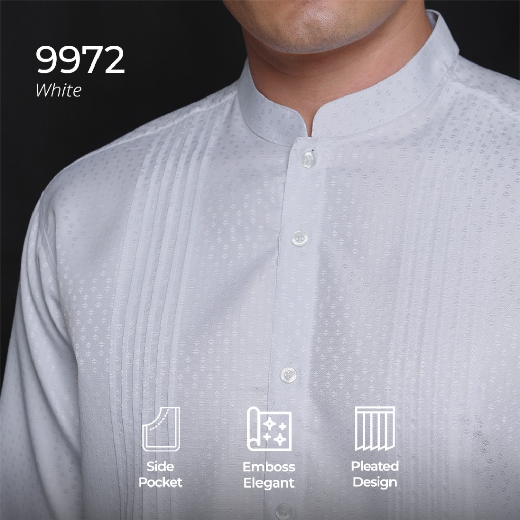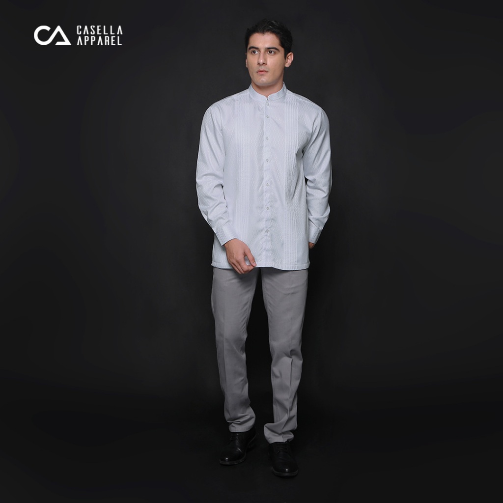 Casella Baju Koko Pria Lengan Panjang Pleats Design | Baju Koko Putih Lengan Panjang