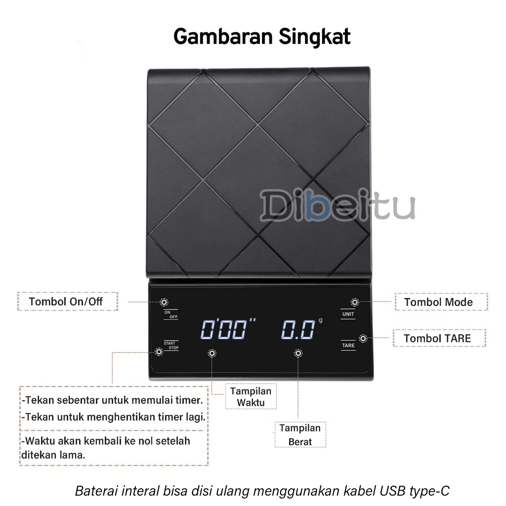 [Star] Timbangan Kopi 5Kg / 0.1Gr Digital Timer Drip Coffee Scale Premium
