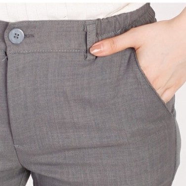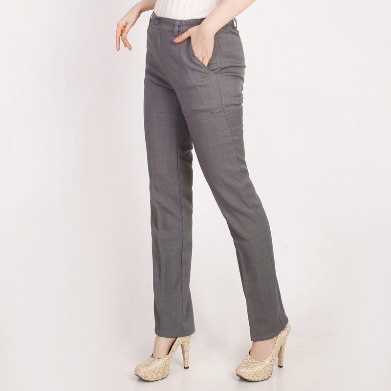 Celana Kerja Panjang Wanita Pinggang Karet - Clana Kantor Bahan Kain Katun Cewek / Perempuan