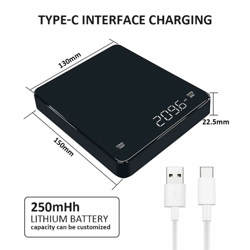 [Star] Timbangan Dapur / Kopi Digital Timer Led Screen 3Kg Coffee V60 Usb Type C - Ck2150