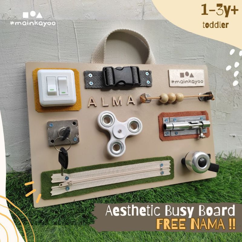 Papan Main - Busy Board 20X30 , Free Nama . Mainan Kayu Edukasi Montessori Sensori Anak