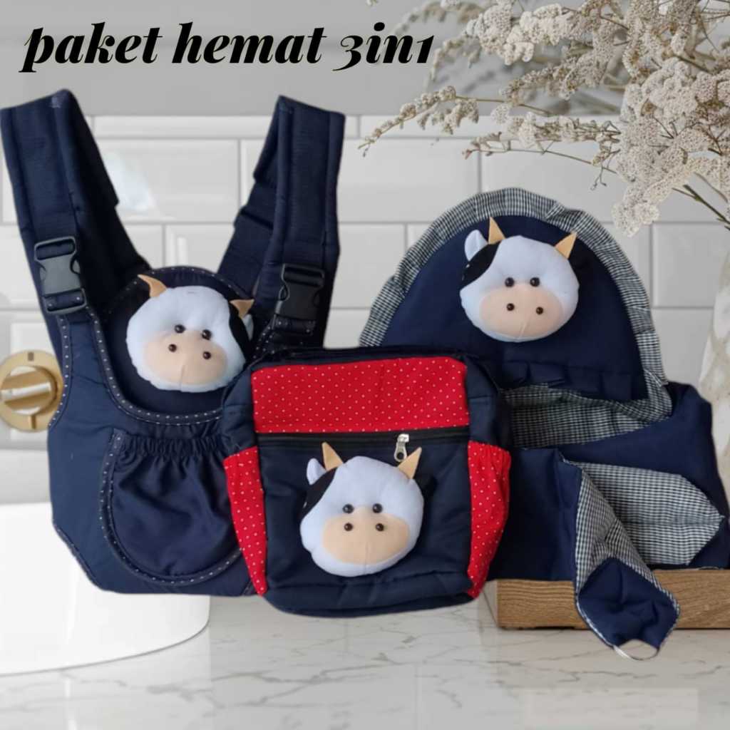 Paket-Hemat-3in1-Tas-Bayi-dan-Gendongan-Bayi-Depan-Ransel-Gendongan-Samping-Topi