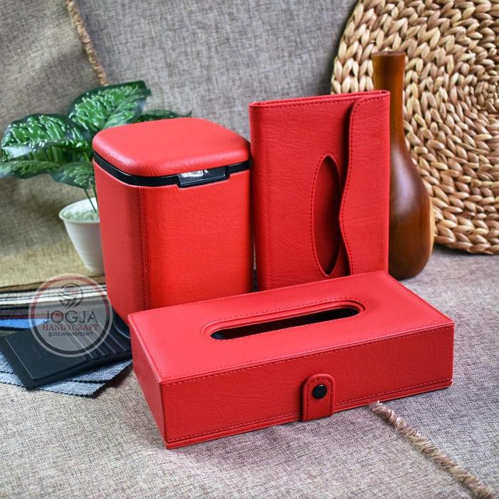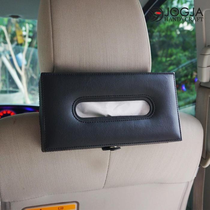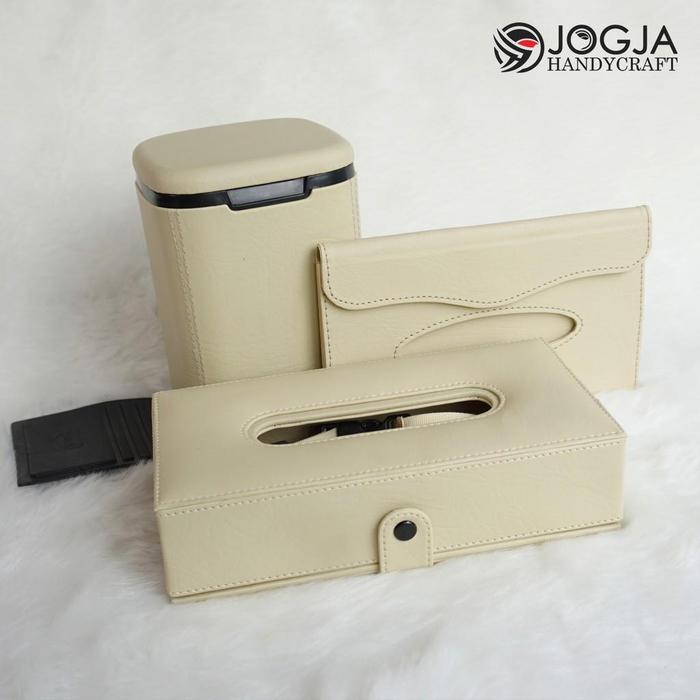 1 SET AKSESORIS INTERIOR MOBIL - TISSUE BOX HEADREST, TEMPAT TISU SUNVISOR & CAR DUSTBIN - HITAM