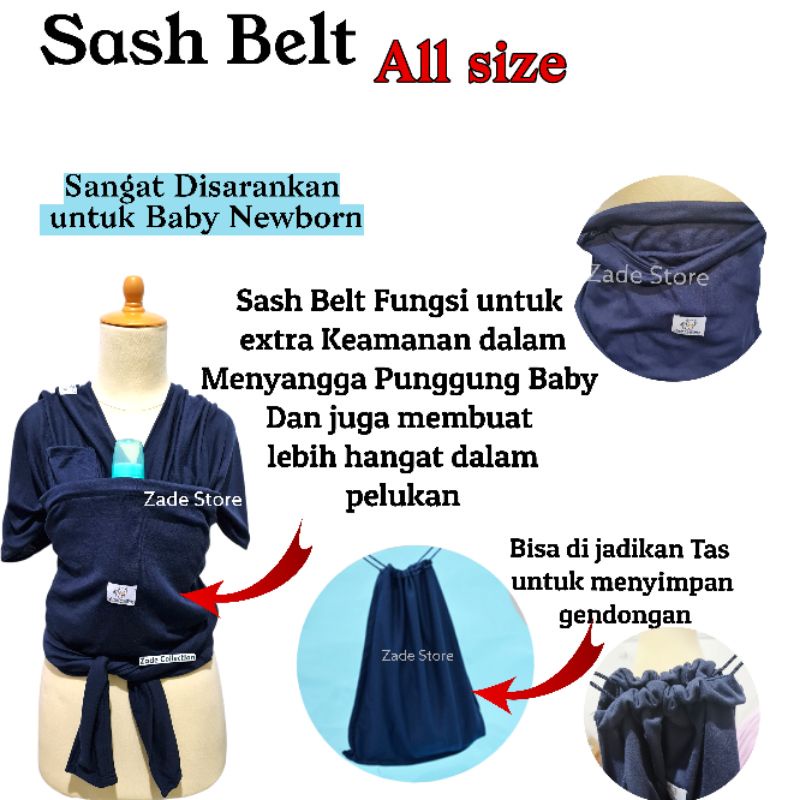 Gendongan bayi Kaos Geos 3in1 + Sash Belt Kantong Zade Collection Gendong Samping dan Depan ( M Shape ) Kangguru hipseat geos cotton gendongan anak wrap wrab
