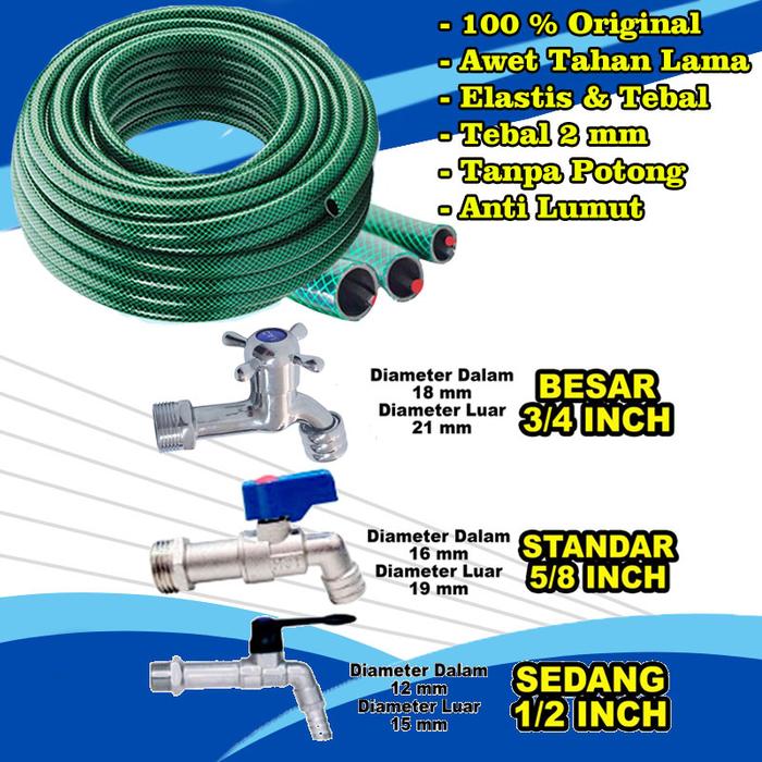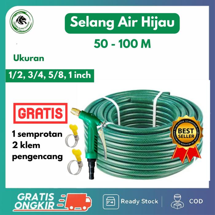 SELANG AIR HIJAU SERAT BENANG 50-100 METER 1/2, 5/8, 3/4, 1 INCH GRATIS SEMPROTAN - ANTI LUMUT UNTUK TAMAN PERKEBUNAN ALAT CUCI MOTOR MOBIL MURAH - 1/2 INCH 50 METER