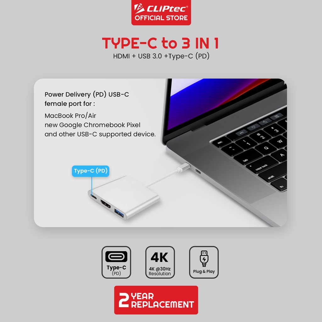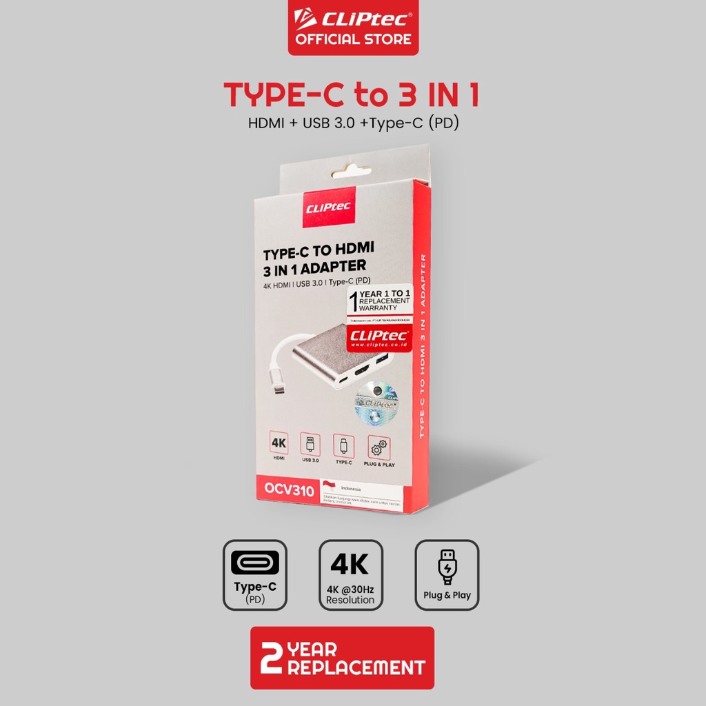 Converter Type C to Hdmi 3in1 Usb 3.1 4K Cliptec OCV310