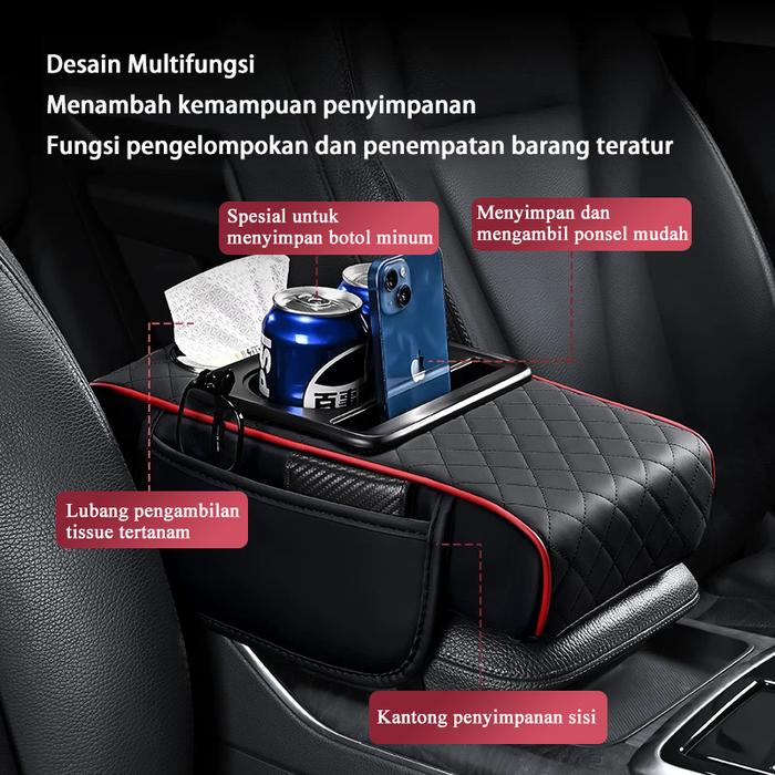 SKY ARMREST PAD MOBIL KOTAK TISU MOBIL TEMPAT BOTOL 4 IN 1 / CONSOLE BOX STORAGE / COVER TISU PREMIUM SARUNG JOK MOBIL AYLA CAR KENDARAAN - KOPI